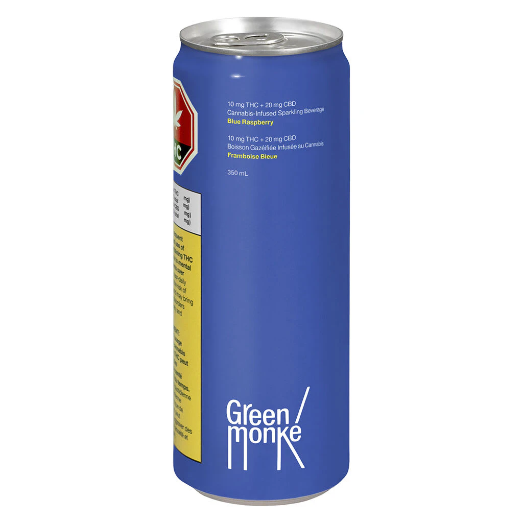 A delicious new Green Monk product with nostalgic blue raspberry flavour mixed with a bit of tart lemonade. With a 2:1 ratio of CBD to THC, this drink contains 20 mg of CBD and 10 mg of THC. Now made in a recyclable printed can. Pour this blue sparkling liquid into a frosty mug full of ice and serve with a silly straw. Made without animal products or gluten.