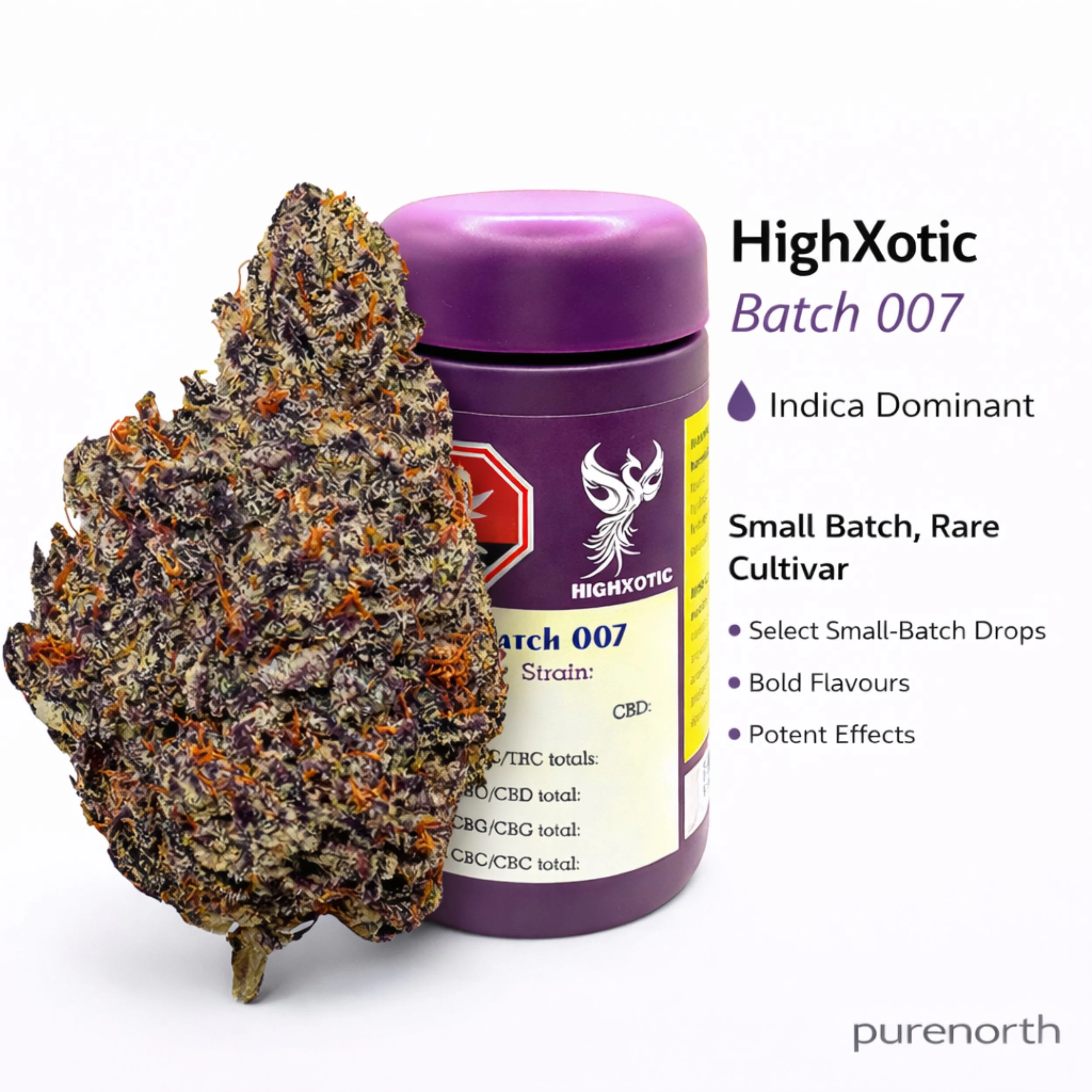 An exclusive flower from HighXotic, crafted from personal grows by our master grower. Rare, bold, and available only in small, limited drops throughout the year. This isn’t just another dried flower — it’s our master grower's hobby. HighXotic’s new release is crafted from personal, small-batch grows that our master grower nurtures outside of our core production. Each drop showcases a unique strain, carefully selected and cultivated to express bold flavours and potent effects. Released only in very limited quantities, these jars are for the experienced and HighXotic collectors. Once they’re gone, they’re gone. No reruns. No compromises. Just the raw passion of a grower obsessed with the craft — now in your hands.