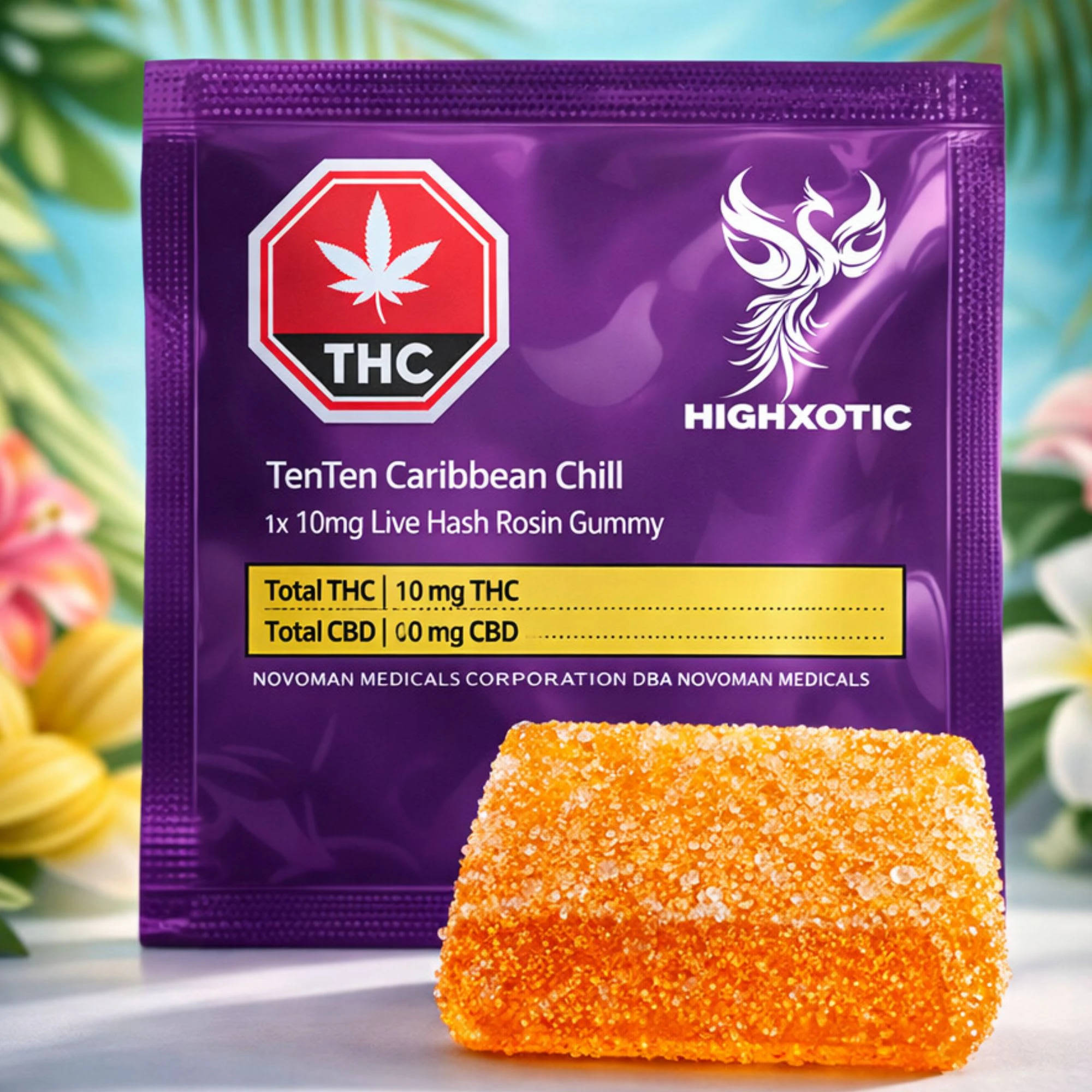 Experience the tropics in every bite with TenTen Caribbean Chill, a premium cannabis gummy crafted for the discerning consumer. Made with only plant-based, natural, and non-GMO ingredients, this single gummy delivers 10mg of THC, infused with high-quality live rosin for a clean, full-spectrum cannabis experience. Perfectly portioned and bursting with tropical flavour. Indulge in this elevated edible and savour the balance of exceptional taste and craftsmanship.