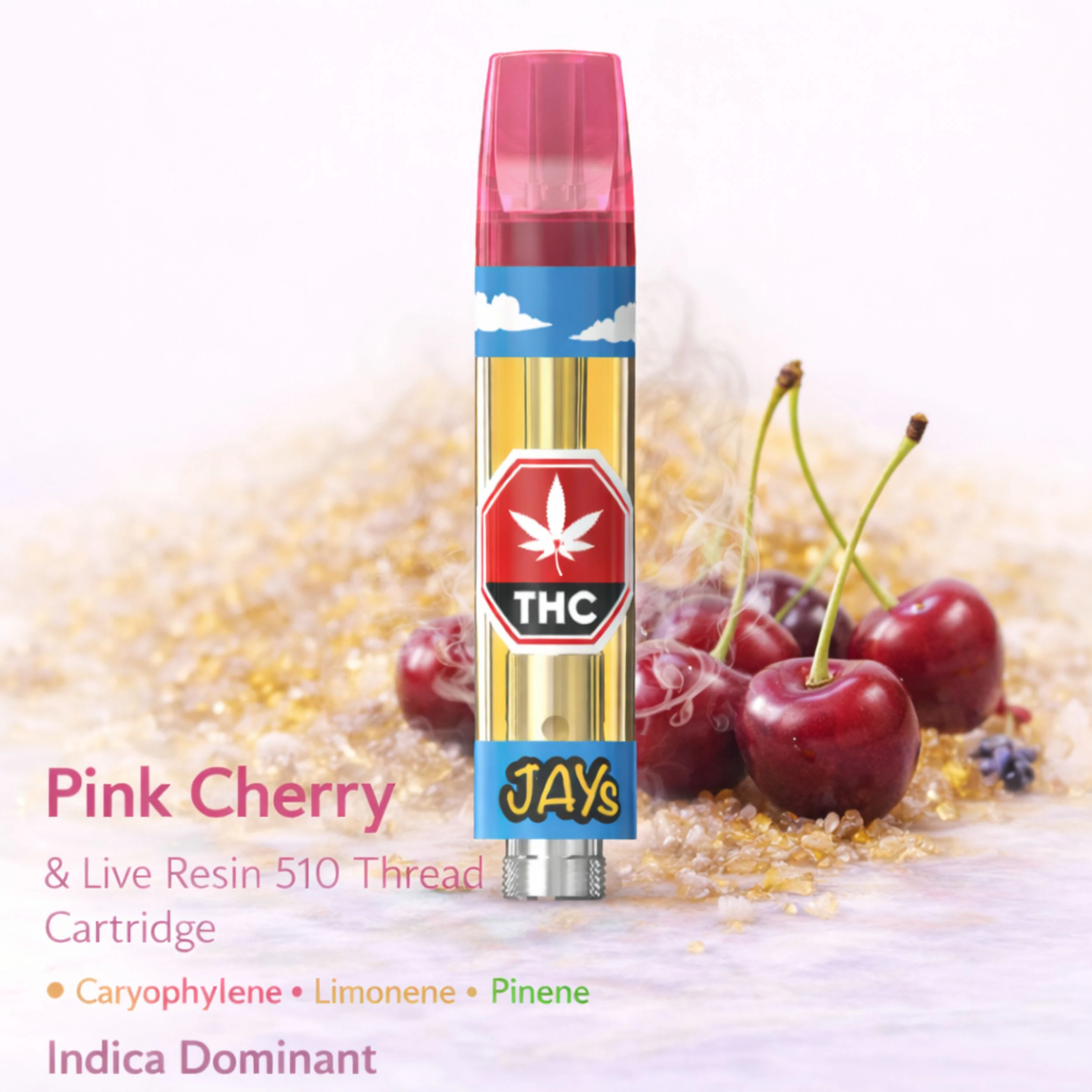 Pink Cherry is a knockout of live resin, expertly extracted in Ontario expressing myrcene and limonene terpenes. It has the fruity flavours of rich cherry with berries and stone fruit. Small batch BHO extraction ensures a whole flower cannabinoid experience for consumers. Captured in a universal 510 cart for convenient pulls wherever you go.