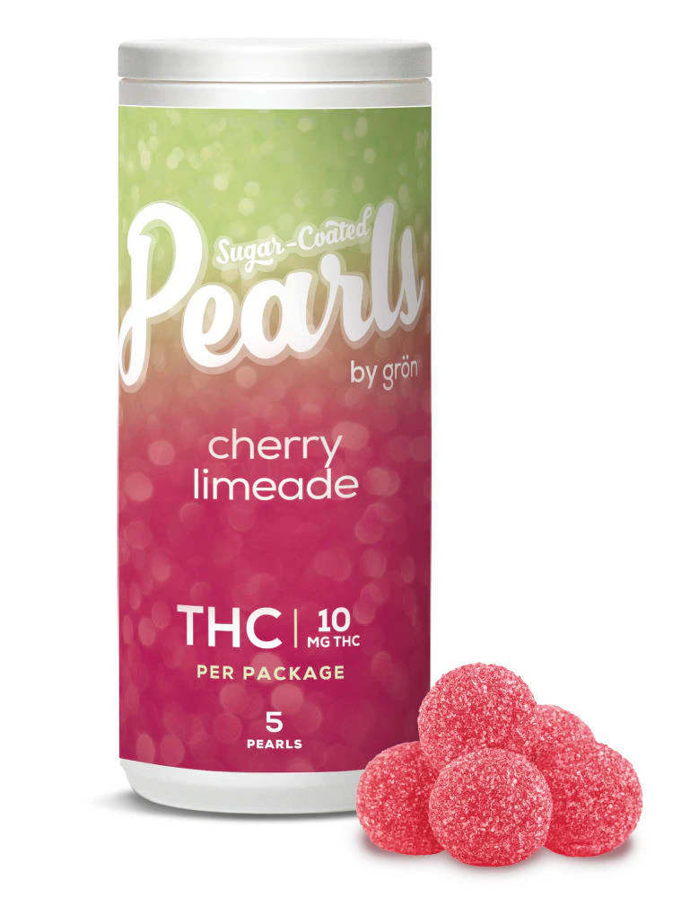 Pucker up and get perky with juicy Cherry Limeade THC Pearls. Tart cherry and lime flavours come together, pairing perfectly with 10 mg of THC per package. Let your taste buds rejoice with our sugar-coated soft chew Pearls, bursting with delicious fruit flavours. Available in a variety of ratios, you can enjoy pearls with CBD, CBG, CBN, and THC.