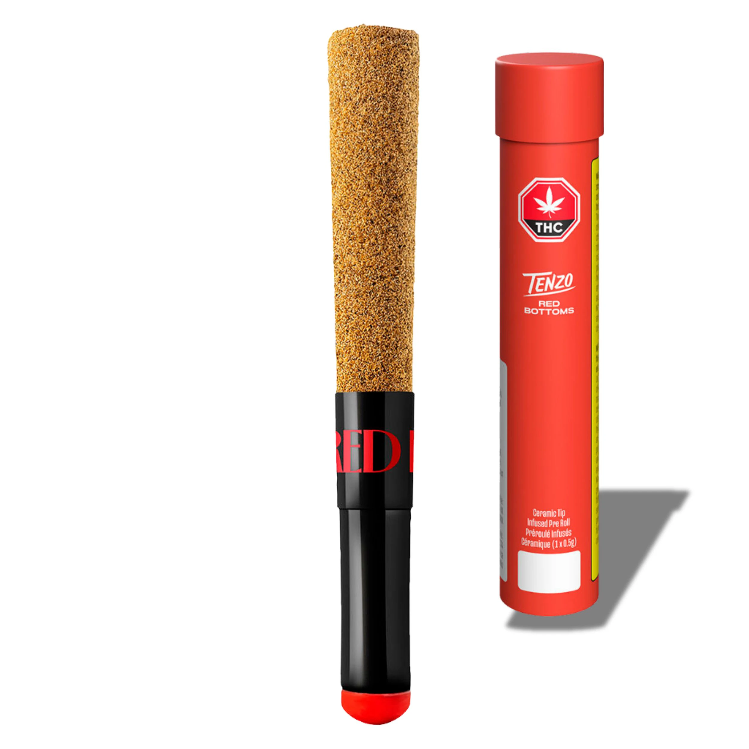 Tenzo’s Red Bottoms is a quality infused pre-roll. Made from handcrafted Red Velvet 11 x Apple Banana Cndy whole flower, infused with liquid diamonds and a meticulously formulated terpene blend. Red Bottoms delivers a refined and indulgent flavour profile with layered notes of sweet crisp apple. Finished with a reusable bold red ceramic tip, each pre-roll is designed as much for the eye as for the palate. It's a statement piece that blends craftsmanship, potency and elegance in every draw.